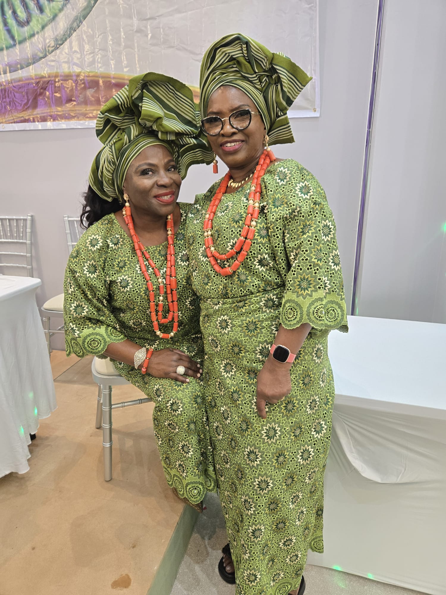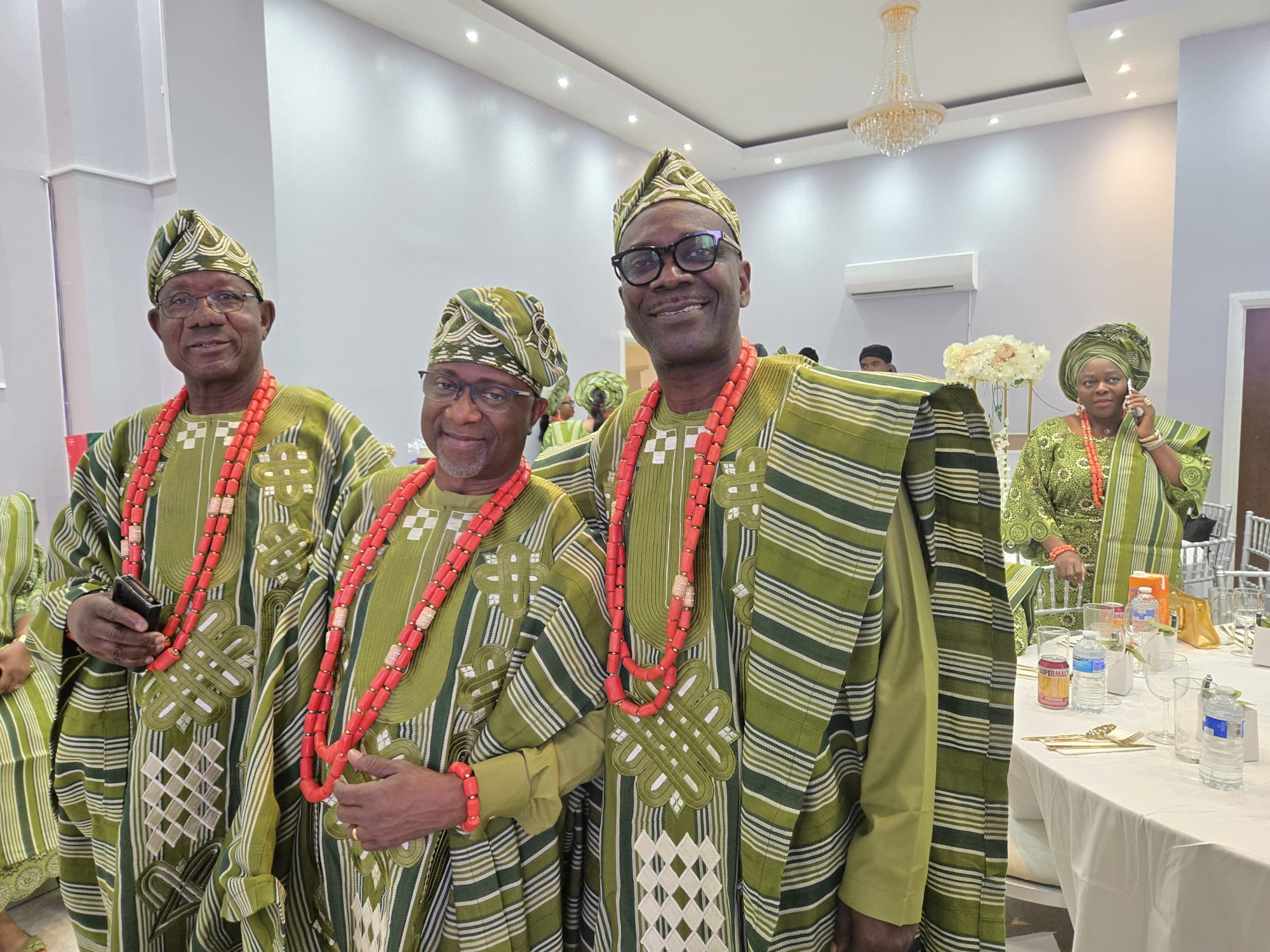 - Cultural Elegance: Admire the stunning traditional attire, featuring green Aso-Oke fabric and matching Iyun beads, that added a touch of cultural pride to the event.